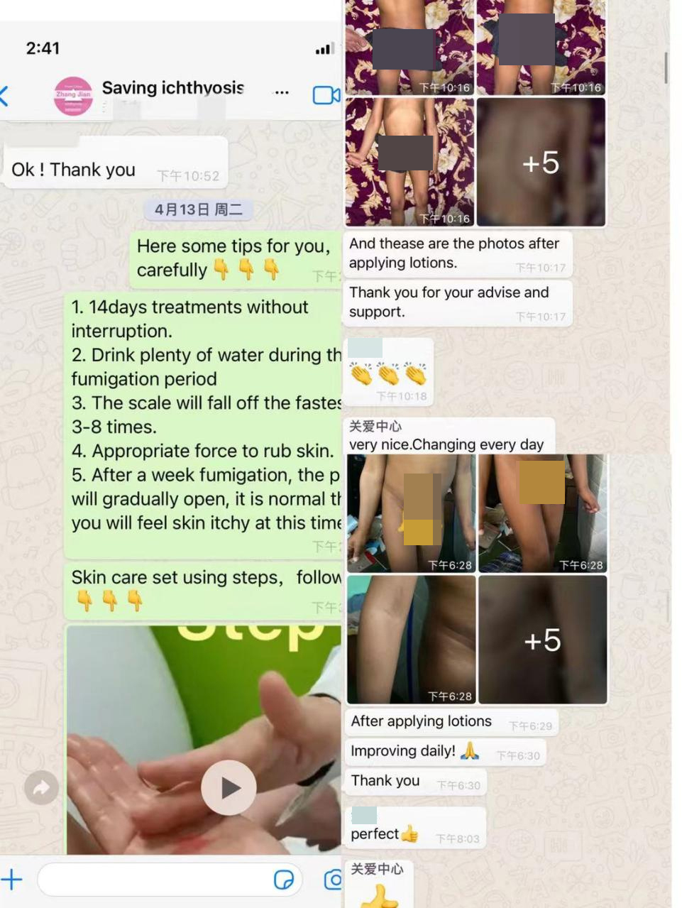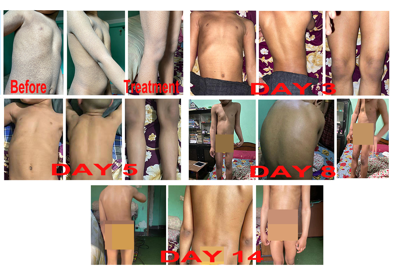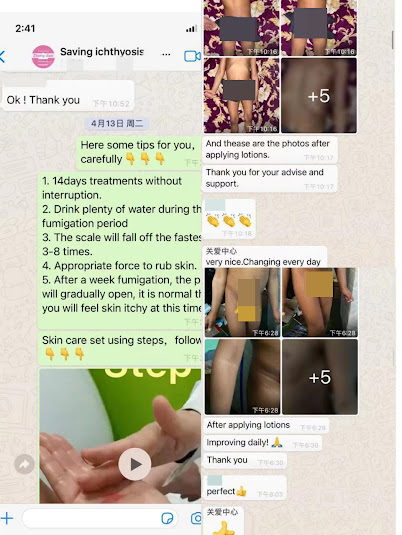 Among the children we helped with ichthyosis, Simon(used an) from Nepal was the youngest. His father was very anxious when he got in touch with us by email.We contacted our partner Zhang Jian Therapy as soon as possible to send the Home Skin Kit for him. A week later he received the package, and the same day he installed the Fumigation Box for the child, he began fumigating for Simon the next day. During the treatment process, Simon's father asked questions and sent photos about his child's skin appearance every day, the Dermatologist and the doctors from Zhang Jian Therapy answered all the questions for them in detail.